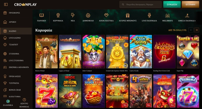 Η ενότητα slots μας περιλαμβάνει εκατοντάδες παιχνίδια από μερικούς από τους πιο γνωστούς παρόχους της βιομηχανίας. Τα φρουτάκια στο Crownplay έχουν σχεδιαστεί για γρήγορη φόρτωση, με πολύχρωμα θέματα, bonus γύρους και χαρακτηριστικά που κρατούν το ενδιαφέρον αμείωτο. Είτε προτιμάτε υψηλή μεταβλητότητα, bonus buys ή απλά φρουτάκια με φρούτα, εδώ θα τα βρείτε.